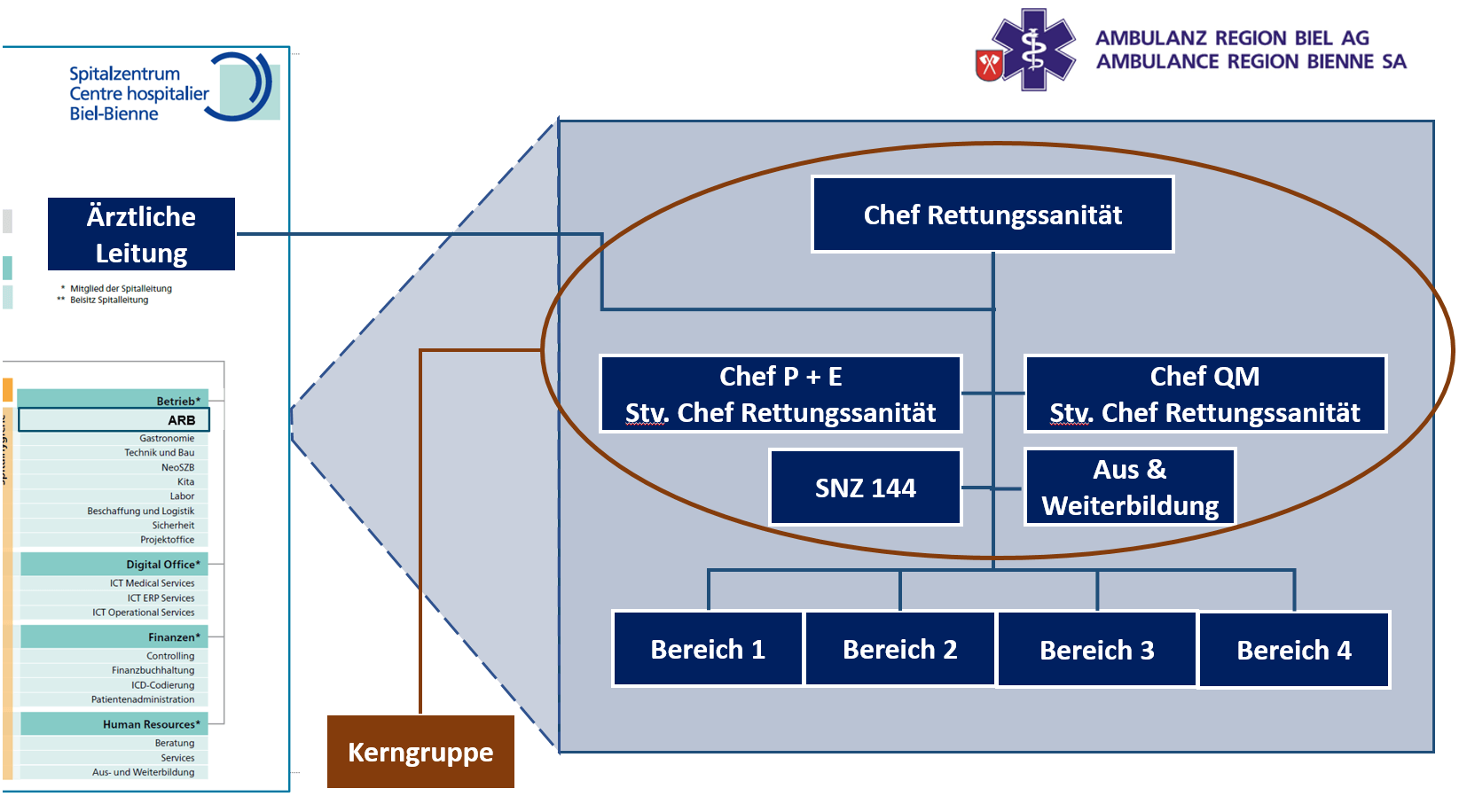 Ambulance Région Bienne SA (ARB SA) est la société de transport des malades et blessés des services de secours de la région de Bienne et environs. Sa centrale d’intervention traite environ 40’000 appels par année et ses véhicules assurent quelque 7’000 interventions, réparties entre les transports de malades et les secours. Constitués en société anonyme en 1996, les services de secours sont une filiale du Centre hospitalier Bienne SA, actionnaire majoritaire avec 66,6% des parts. Les 33,3% des actions restantes appartiennent à la commune de la ville de Bienne.